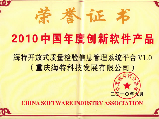 2010年9月3日,“2010中國軟件產(chǎn)業(yè)發(fā)展暨企業(yè)創(chuàng)新高峰會(huì)”在南京金陵會(huì)議中心揚(yáng)子廳舉行。我公司“海特開放式質(zhì)量檢驗(yàn)信息管理系統(tǒng)平臺(tái)(TIS)V1.0”在此次會(huì)議上獲得了中國十大創(chuàng)新軟件產(chǎn)品的殊榮。